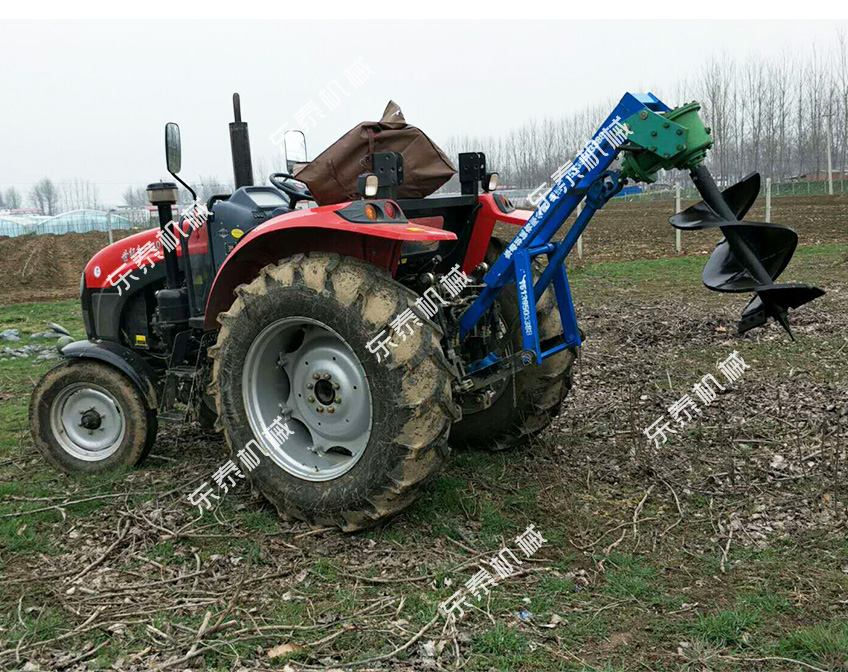 临颍县东泰机械制造有限公司的植树挖坑机由传动轴、减速器、钻头、机架等组成。通过液压悬挂装置挂在拖拉机后面,由拖拉机动力输出轴经传动系统驱动钻头进行挖坑作业,钻头一般采用双螺旋型,植树挖坑机可安装使用不同规格的钻头,能充分利用拖拉机功率和提高率。